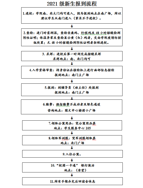 1.所有新生需持48小时内核酸检测阴性证明、健康码和行程码到校报到;