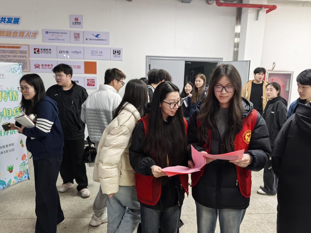 为进一步增强学院师生的环保理念,倡导绿色生活方式,3月12日,管理与信息学院于润心楼一楼大厅开展了一场别开生面的植物领养活动。活动利用课间时间举行,吸引了学院众多师生踊跃参与,现场氛围热烈,洋溢着浓厚的绿色与活力气息。