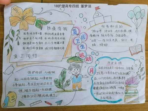 今年是我国第32个爱国卫生月,为号召广大学生积极参与爱国卫生运动,认识到健康文明生活方式的重要性,巩固疫情防控成果继续贡献自己的力量,近期,护理系团总支组织开展了“人人参与爱国卫生,共促共享健康环境”宣传教育活动。