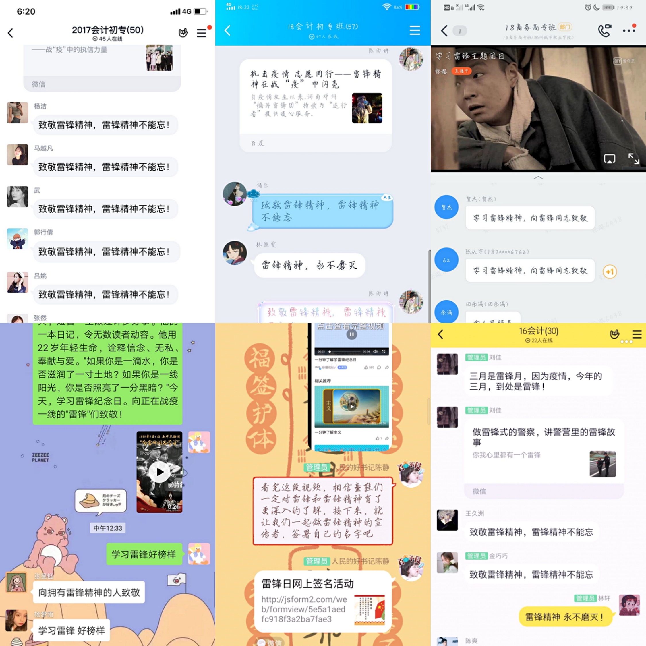 通过观看线上视频、文章阅读,同学们自主在班级群中开展热烈讨论,纷纷发表对雷锋精神的见解,抒发对雷锋同志的敬佩与缅怀。
