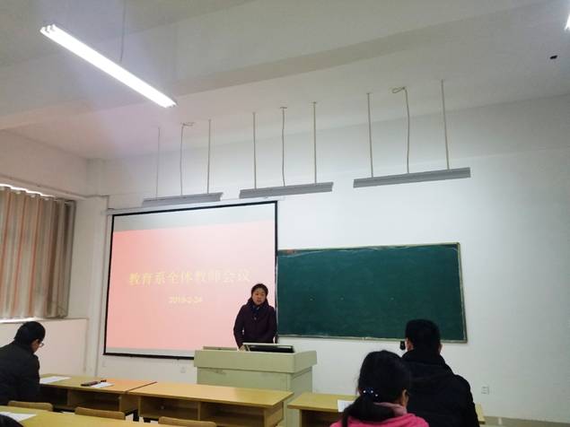 2月24日,教育系召开全体教职工会议,安排部署新学期各项工作,教育系全体教职工参加了会议。会议由系主任钱庆兵主持。