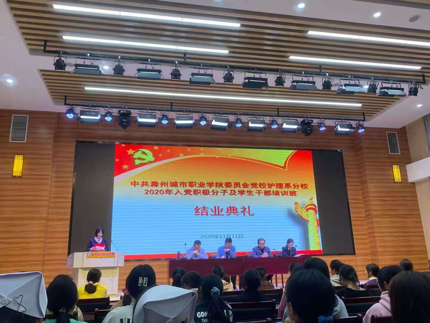 11月11日,护理系党总支分党校2020年入党积极分子及学生干部培训班结业典礼在学院第二报告厅顺利举行。护理系党总支副书记朱启来及总支委员参加结业典礼。典礼由本期培训班班主任秦海娇主持。