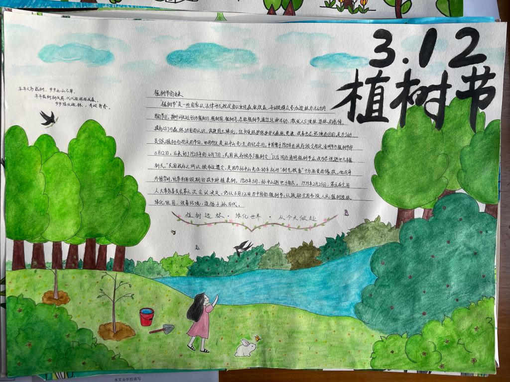 各班组织开展“绿色环保,从我做起”承诺践诺活动。同学们承诺不使用一次性打包盒,一次性筷子;在食堂就餐,不浪费粮食,吃多少,打多少;光盘行动,养成良好习惯,坚守勤俭美德,引领节约时尚。同学们积极宣传环保相关知识。手绘植树节相关手抄报、绘画等,呼吁大家养成绿色环保的好习惯。