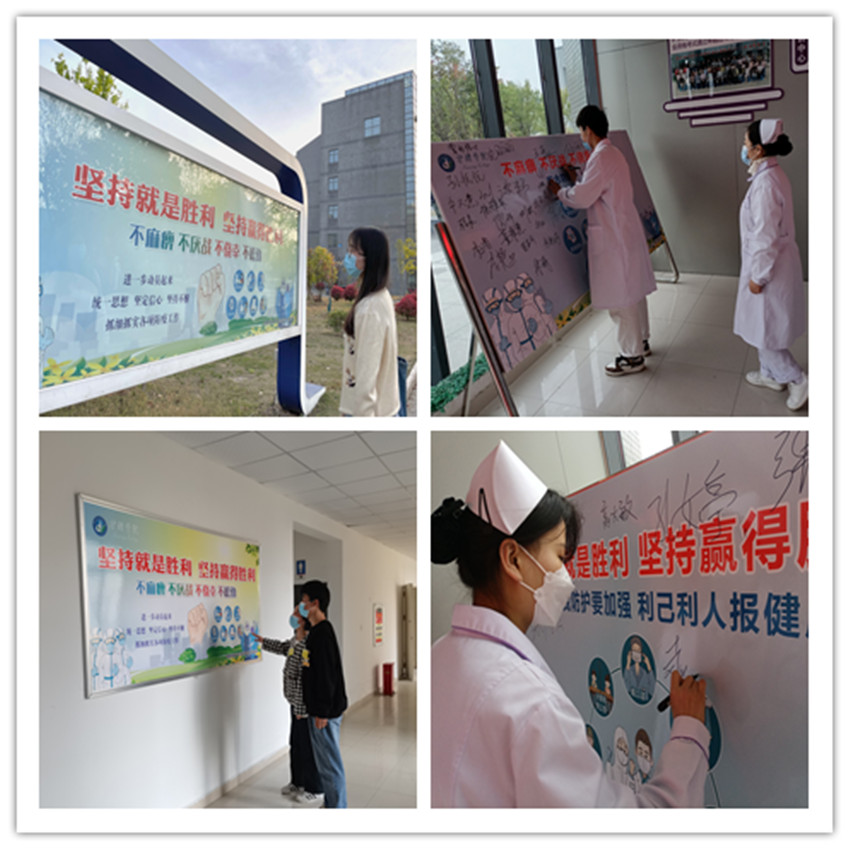 做凝聚力量的“宣传家”。护理学院积极为疫情防控工作鼓劲打气,汇聚正能量。“力“皖”狂澜,“滁”去疫情”、“疫不容辞”、“疫战到底”、“疫”线有我、战“疫”力量、同心抗“疫”等宣传口号、海报、倡议在学生朋友圈、微信群、工作群等层面响彻抗疫师生心间。党总支书记蔡季秋带领学生管理队伍,每天按时为学生推送或是抗疫政策信息、或是抗疫心得贴士,或是温馨小故事,或是解忧小视频,或是心理小妙招……通过抗疫信息传递、知识传播、心理纾困引导等宣传工作彰显必胜信心。