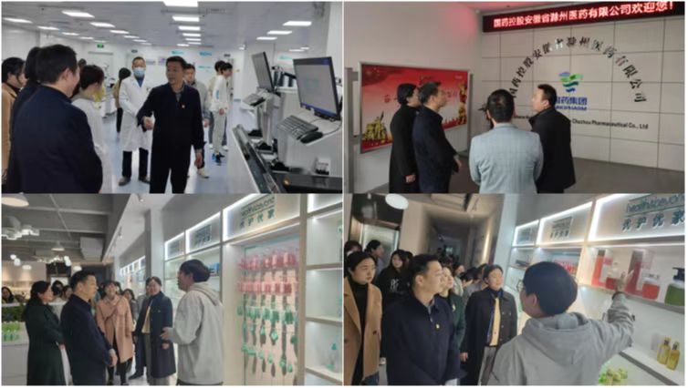 随后考察调研团实地深入的考察了苏滁医院及体检中心、国药控股滁州智能医药物流中心、优护优家化妆品和卫生用品生产项目。实地考察的项目与医学院所开设的专业均有一定的相关性,参观的老师及同学认真参观聆听,并提出了自己专业相关的问题,接待人员均给与热情详细的讲解与说明。
