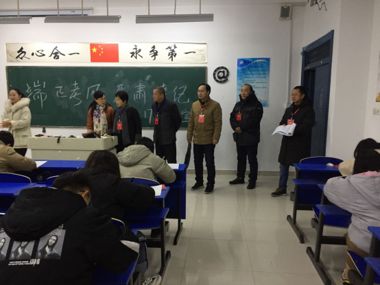 我院2018-2019学年第一学期期末考试于2019年1月14日起陆续开展,在教务处统筹各系部有序配合下,期末考试工作于2019年1月18日圆满结束。考试期间学院领导米德成、张志华、牛春雨、施向阳、陈立武、胡墨农、王树青、王素明、程一斌等分别深入B区、C区考场,不定时地深入考场巡视,检查考试组织和考风考纪情况。各系部负责人及相关人员参加了巡考。
