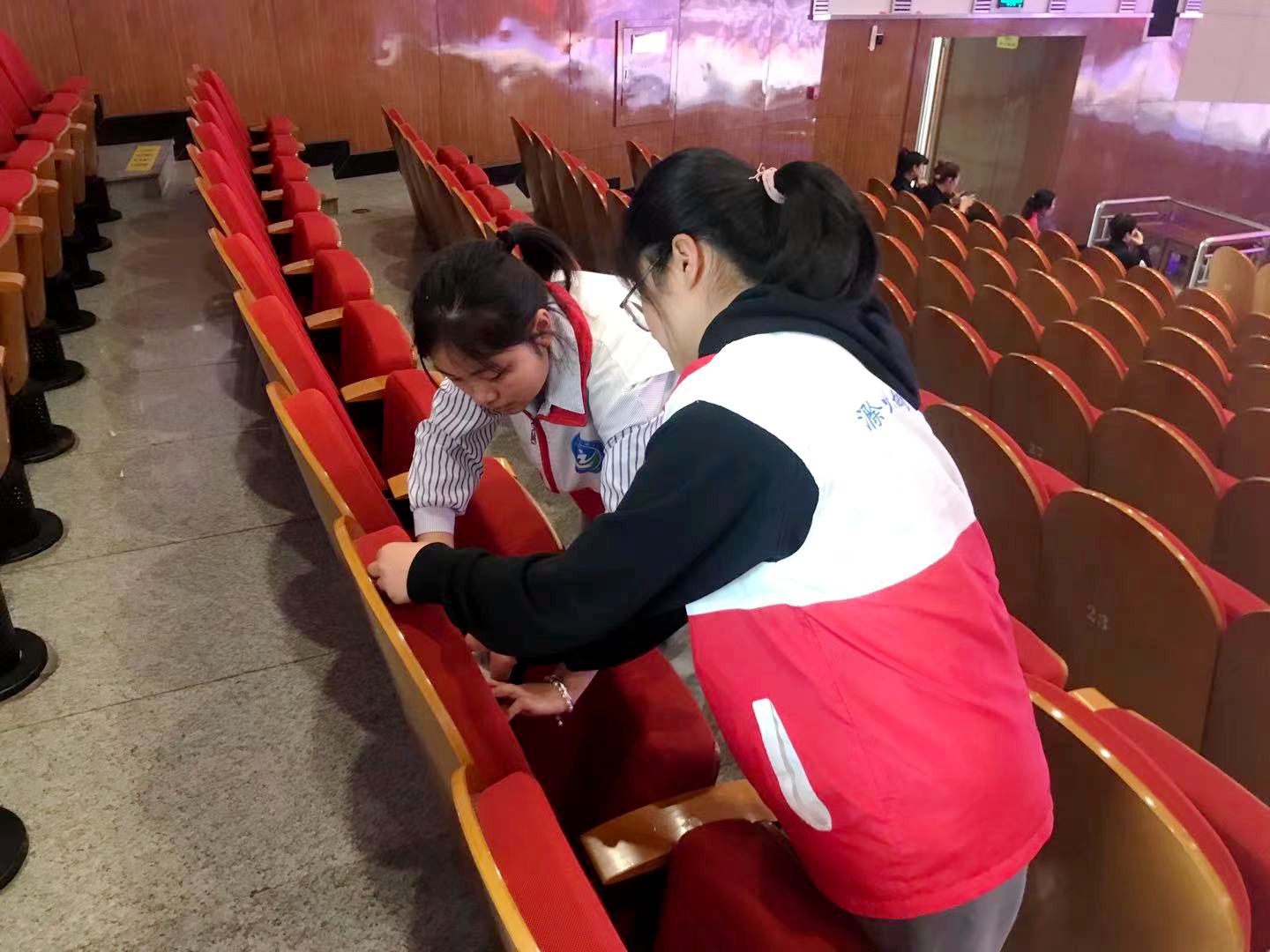 演出当天,我院师生40余人一大早便到达会场,志愿者们开始张贴席位牌、搬运道具;礼仪们熟悉演出流程、站位走位;演员们更衣、化妆、排练,大家力求以最好的状态奉献演出。