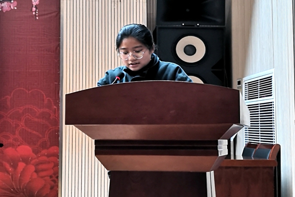 宣讲结束,与会的学生代表上台交流发言。发言同学表示:中国共产党100光辉历程行之不易,现今的美好生活来之不易,作为新时代的大学生定要修身律己、脚踏实地、成长成才、报效祖国。