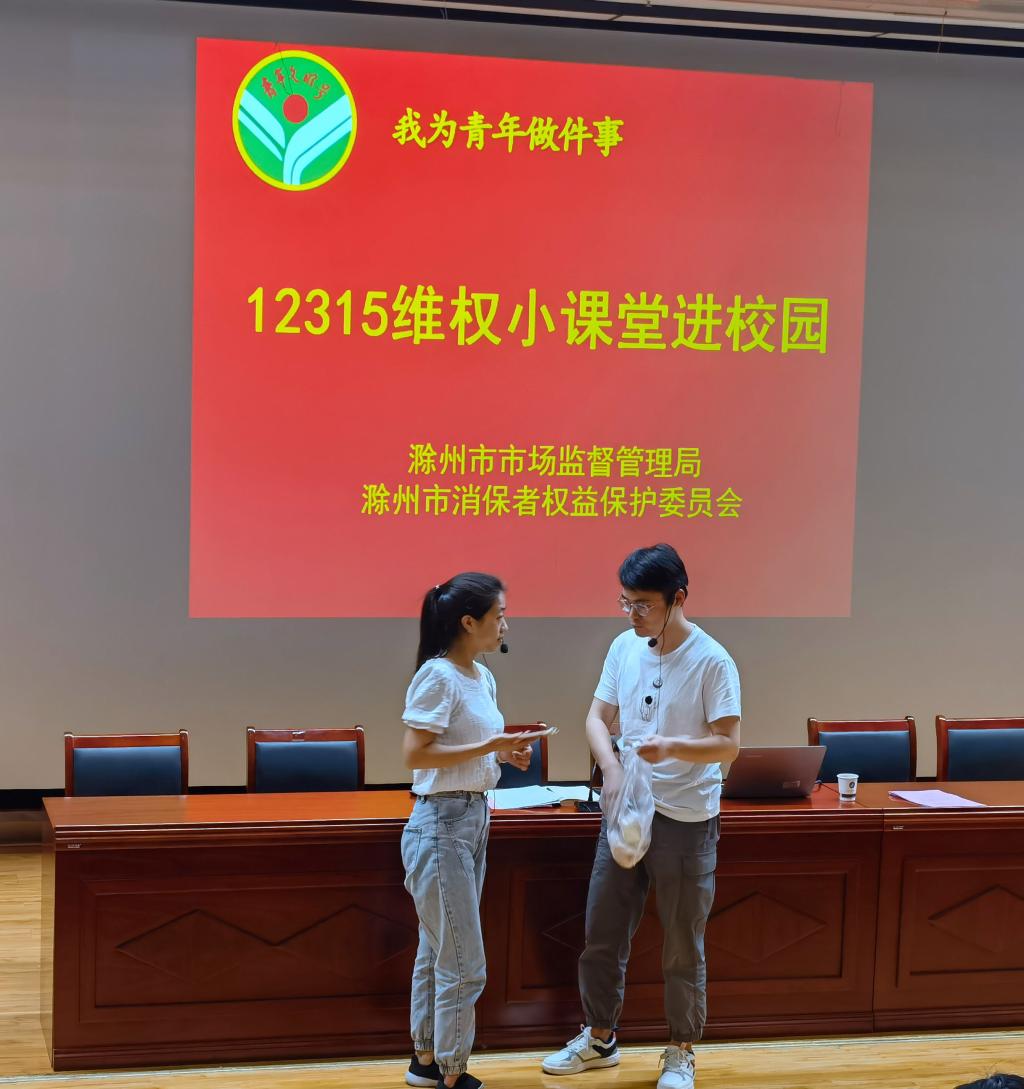 为扎实践行党史学习教育“学党史、悟思想、办实事、开新局”要求,5月28日下午,我院联合滁州市市场监督管理局开展“我为青年办实事”之消费维权知识进校园活动。滁州市市场监督管理局团支部书记李美娜、学院团委副书记陈婷婷及150名青年大学生参加了活动。