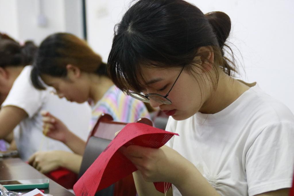 在建党一百周年这个特殊而有意义的年份,亲手绣一面党旗献给党,把对党的热爱之情融汇于一针一线中,是同学们的共同心声,他们穿针走线格外严谨,每针都拿捏得非常准,亲手绣制党旗送给党,把对党的感恩之情绣进了党旗中。(文/图:黄正顺)