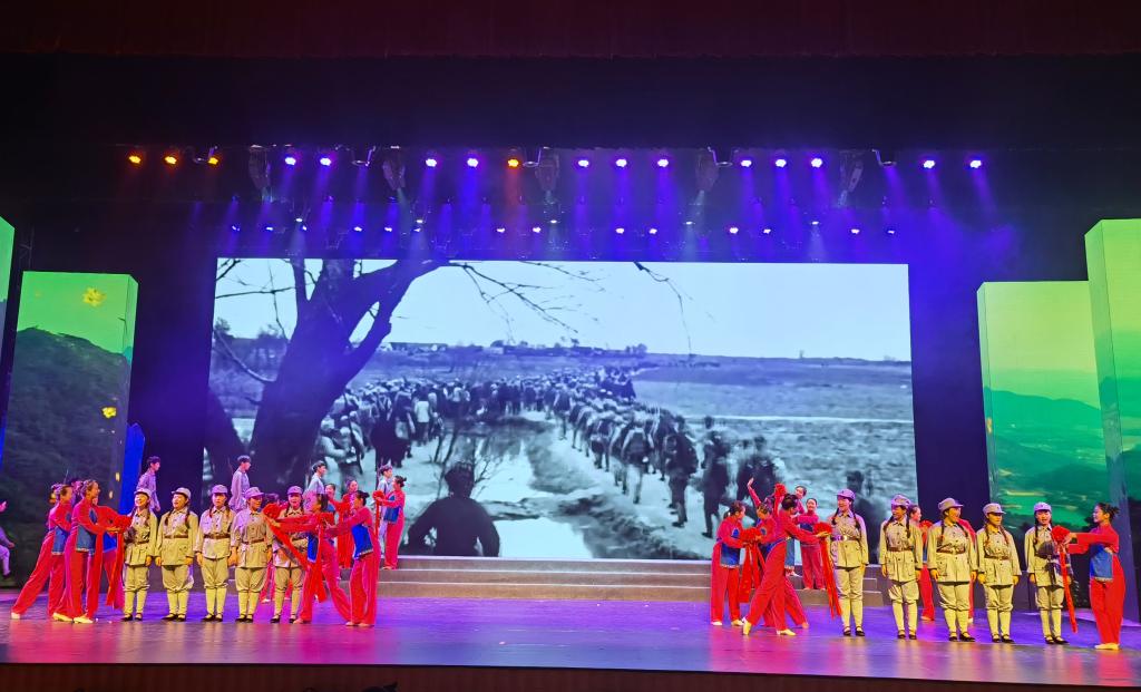 演出以党成立以来的100年为时间轴,通过七个篇章全面讴歌了中国共产党的百年奋斗征程。我院学子参演的情景表演《国际歌》、《南昌起义》、《江山》,情景表演唱《南泥湾》、《八月桂花遍地开》、《走进新时代》、《不忘初心》等节目赢得现场数千名观众热烈的掌声。