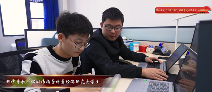 “一赛一品一社团”工程:每个教工支部指导一个学生社团,辅导学生参加一个学科竞赛,做亮一个党建品牌。经济学系教工支部指导学生社团计量经济研究会,创建“党建+社团+科研”育人品牌,科研育人成绩斐然;国贸系、会计系教工支部组建竞赛指导团队,创建了“党建+竞赛”品牌,取得一系列佳绩;工商系支部建立“课程+项目+平台”式创新创业人才培养体系,创新创业成果突出。